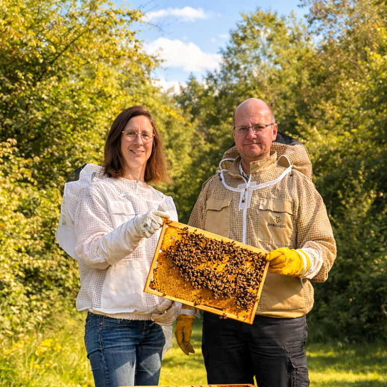 Wir, Katja und Sven, die Geschäftsführer der Bienen-Brise GmbH, sind nicht nur ein eingespieltes Team – wir sind seit vielen Jahren verheiratet und Eltern von zwei Kindern. Als Familie stehen wir mitten im Leben, mitten im Alltag, mitten in all den kleinen und großen Herausforderungen, die uns jeden Tag begleiten. Genau hier hat uns die Welt der Bienen gefunden – und begeistert.